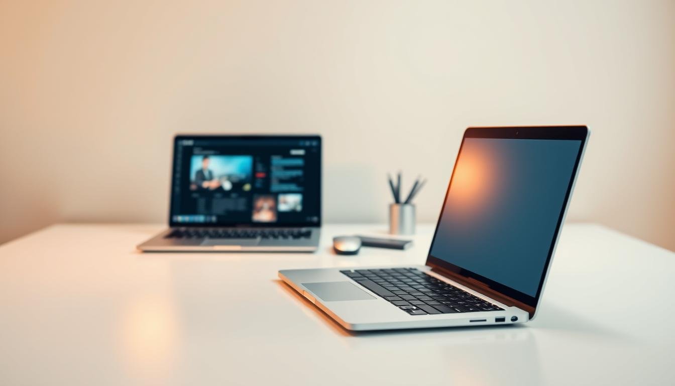A sleek, modern user interface with an intuitive layout and responsive design. The foreground features a laptop display showcasing a clean, minimalist web application with clear navigation and elegant typography. The middle ground depicts a user's hand interacting with a touchscreen device, highlighting the seamless usability. The background is a softly blurred office environment, conveying a professional, productive atmosphere. Warm, natural lighting creates a welcoming ambiance, while a slightly low camera angle emphasizes the user's comfortable, effortless experience. The overall scene radiates a sense of efficiency, accessibility, and user-centric design.